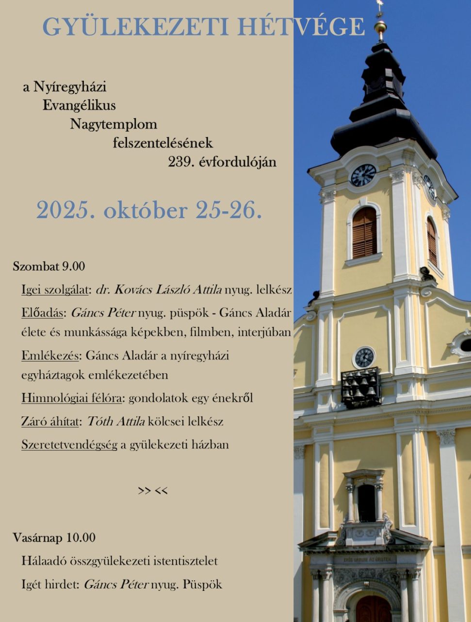 Nagytemplomból (vasárnap 15:00 órától) és