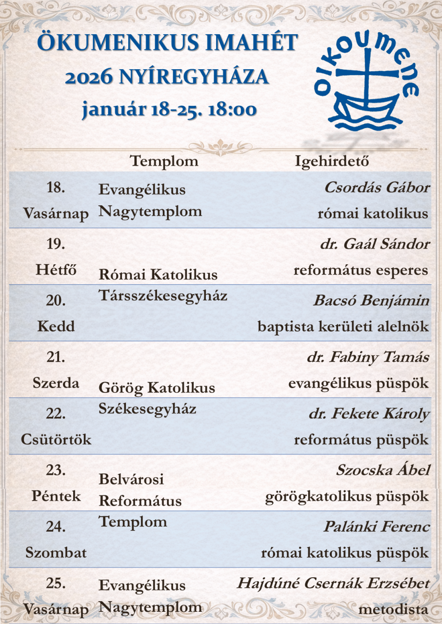 | Augusztus | De mivel Isten mind e mai napig megsegített, itt állok, és bizonyságot teszek. ApCsel 26,22 |